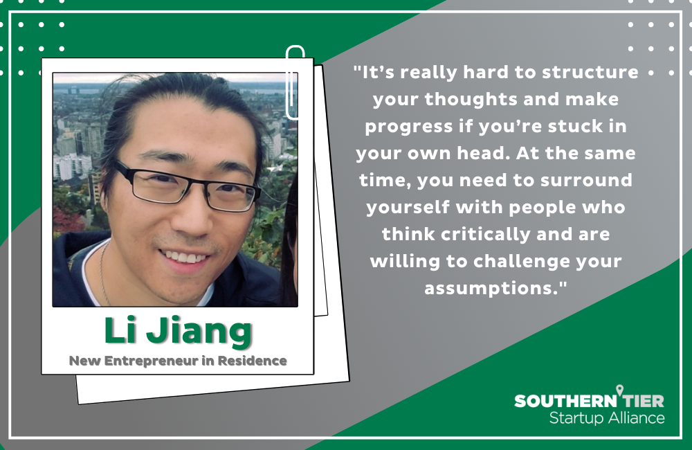 Li Jiang is introduced as one of the Southern Tier Startup Alliance's newest Entrepreneurs in Residence.