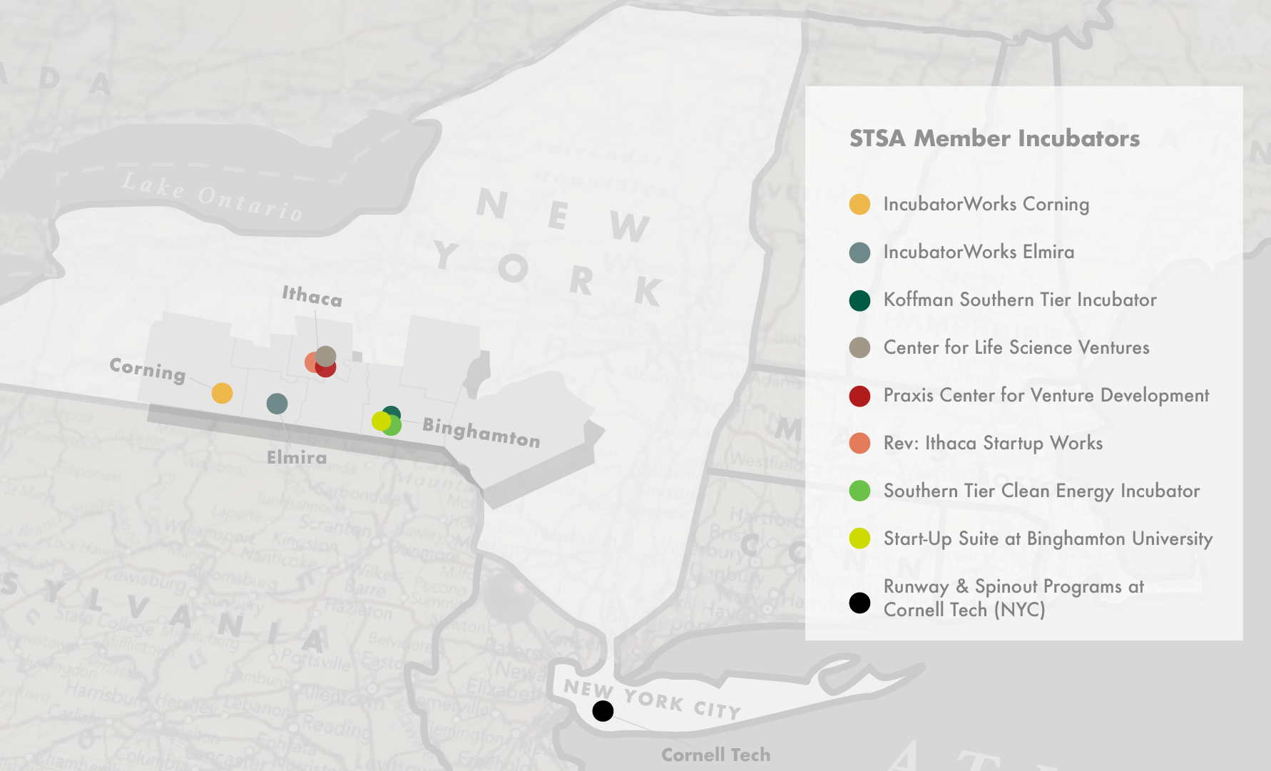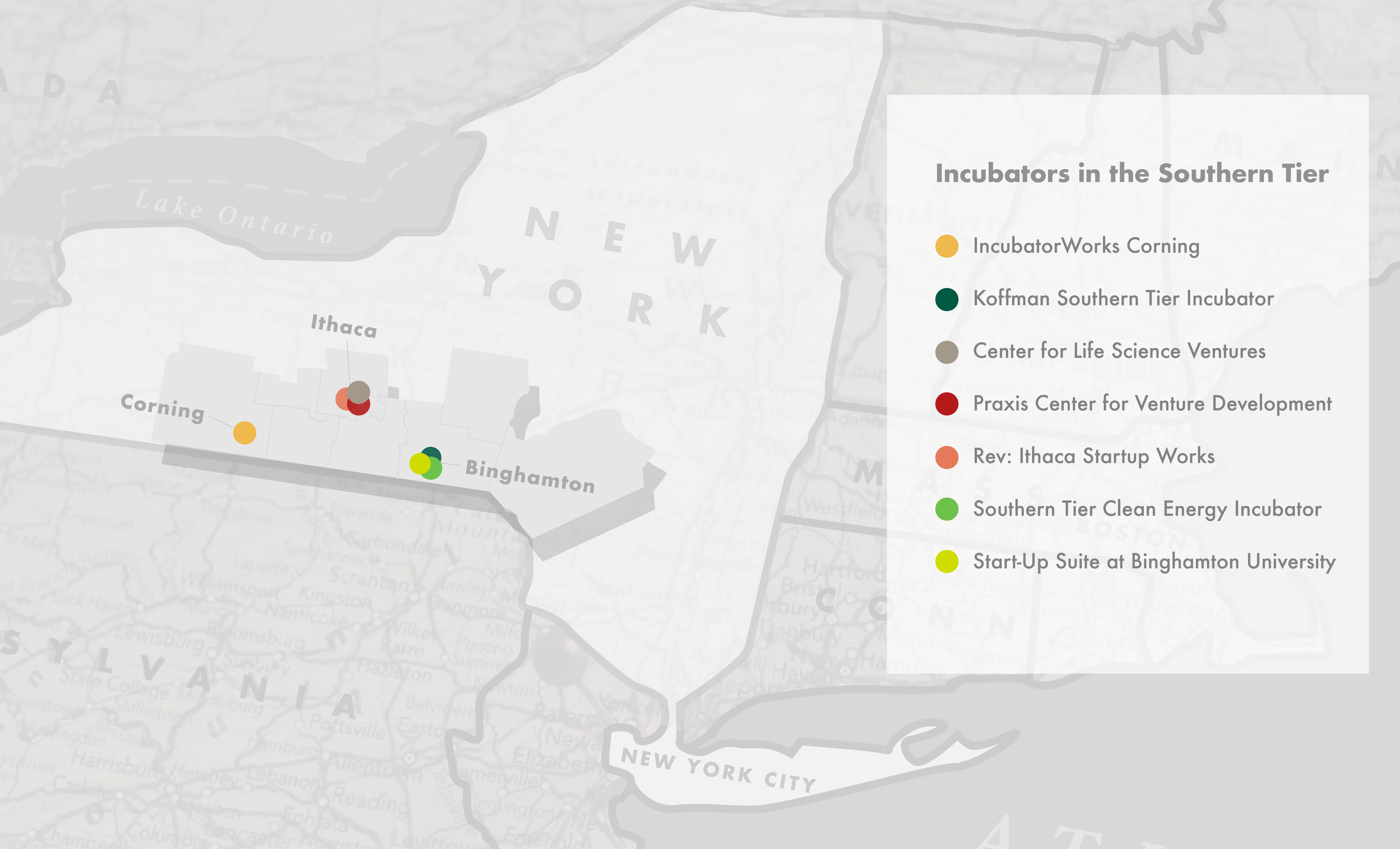 He is an experienced entrepreneur having served as a startup founder and senior finance executive of high-growth companies. Previously, he was Director of Finance for the Triad Foundation, where his responsibilities included investing the Foundation’s $250m portfolio to top-quartile returns. His board affiliations include the Cornell Agriculture and Food Technology Park and Tompkins County Area Development, and as board vice-chair of the Business Incubator Association of New York State. Tom co-chairs the Southern Tier Regional Economic Development Council’s Innovation Culture workgroup.